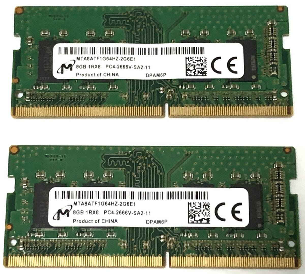 - 【送料無料】Micron MTA8ATF1G64HZ-2G6E1(DDR4-2666V PC4-21333 8Gx2枚 計16GB SO-DIMM) 中古