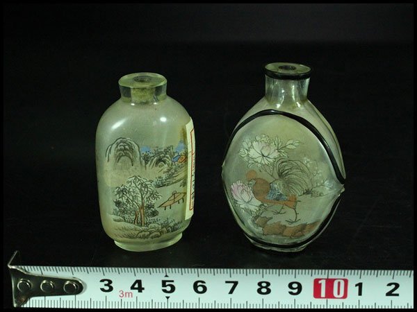 - 【金閣】中国美術 内花鳥紋 鼻煙壷 二件 旧家蔵出 送料無料(XA695)