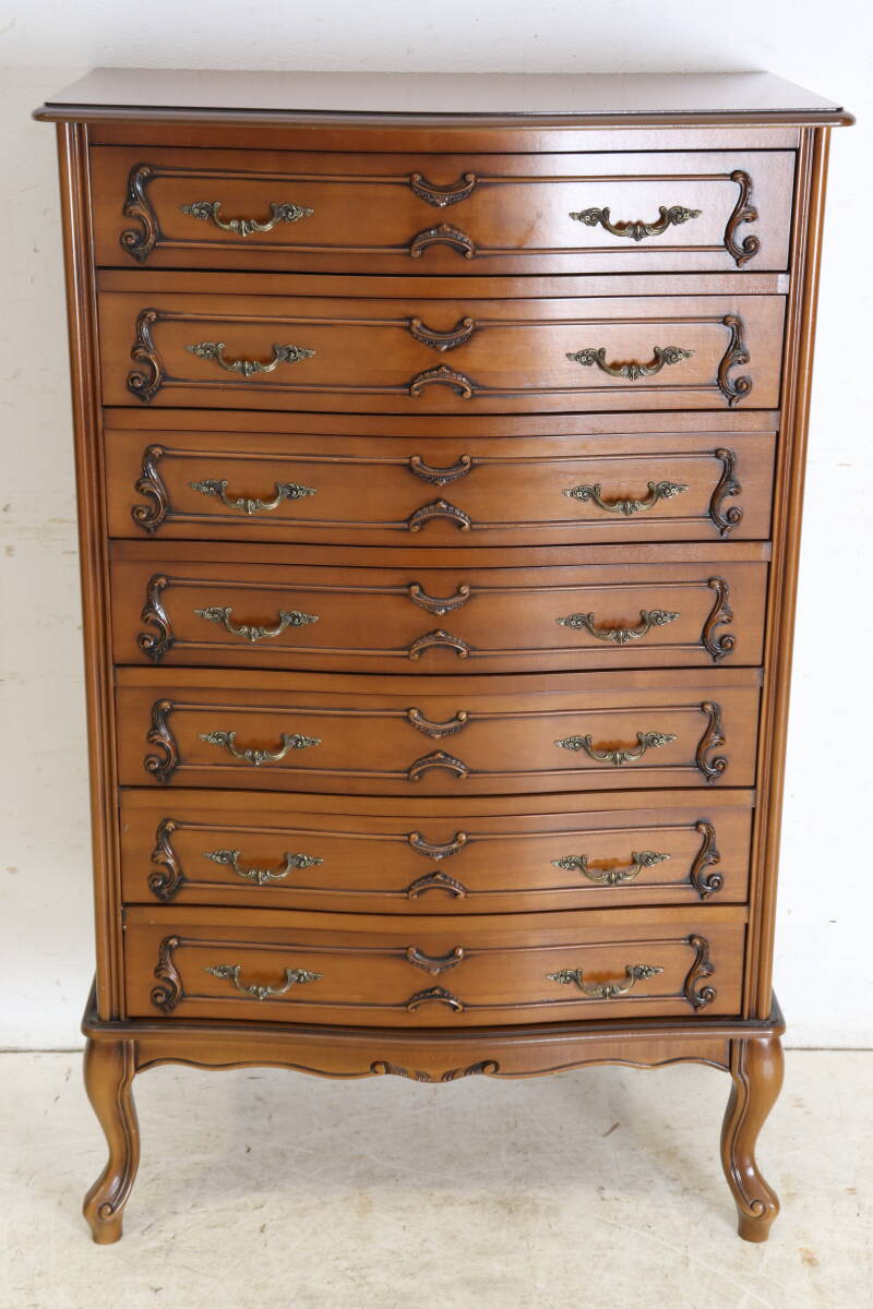- 1980年代 イタリア製 ヴィンテージ 7段チェスト 彫刻装飾 高級クラシック 洋タンス ハイチェスト 収納 アンティーク風 猫脚 イタリア家具