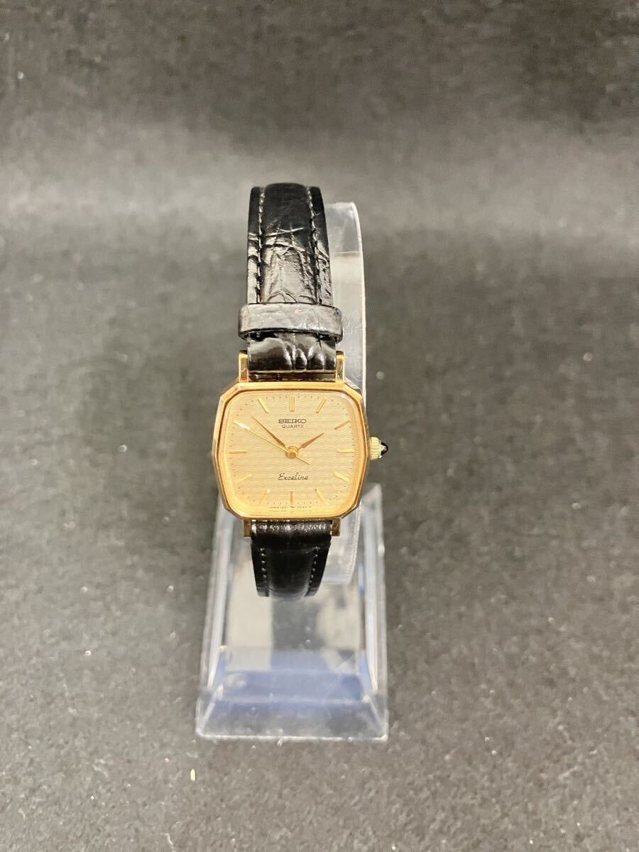 - [T8493]動作品 SEIKO セイコー Exceline エクセリーヌ 1221-5010 クオーツ 腕時計 レディース ゴールド文字盤 電池交換済み