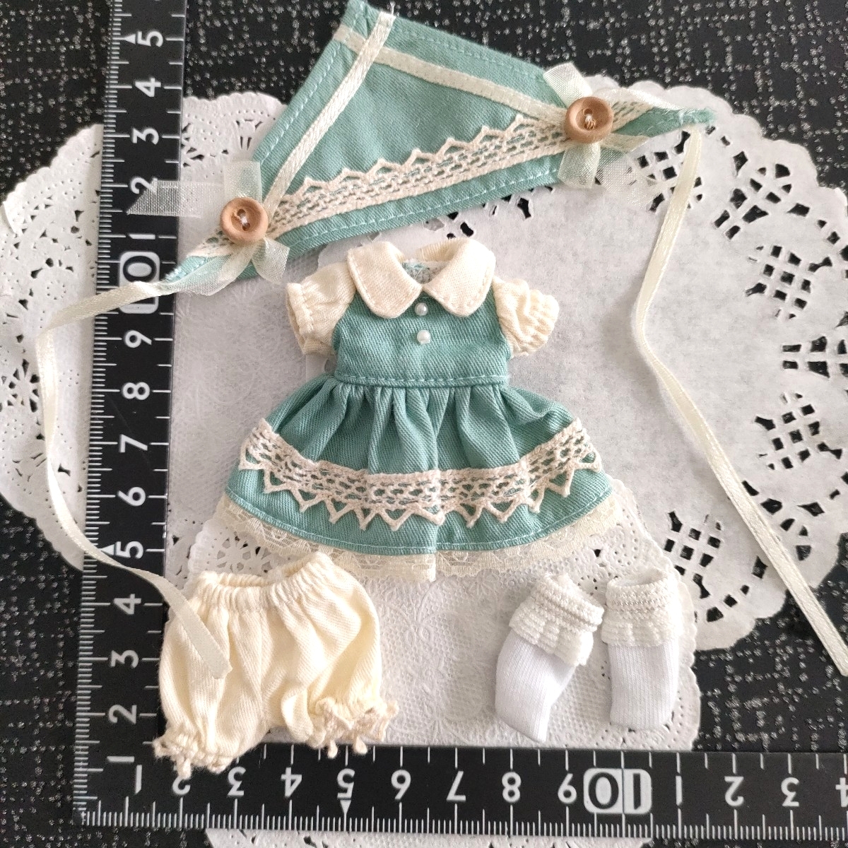 - 5r1018 ドール用 オビツ11 サイズ ワンピース ドロワーズ ソックス ヘッドドレス セット 水色系