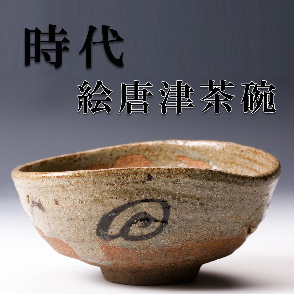 【佳香】時代 見込みに眠る石が魅力! 絵唐津茶碗 仕立箱 茶道具拍卖