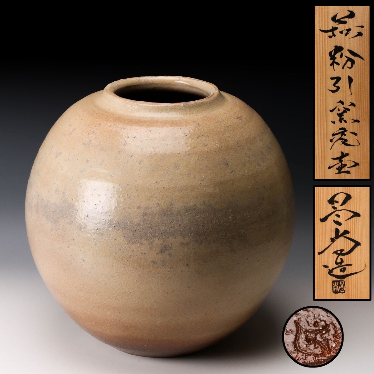 【佳香】兼田昌尚 高さ31cm 萩粉引窯変壷 共箱 本物保証