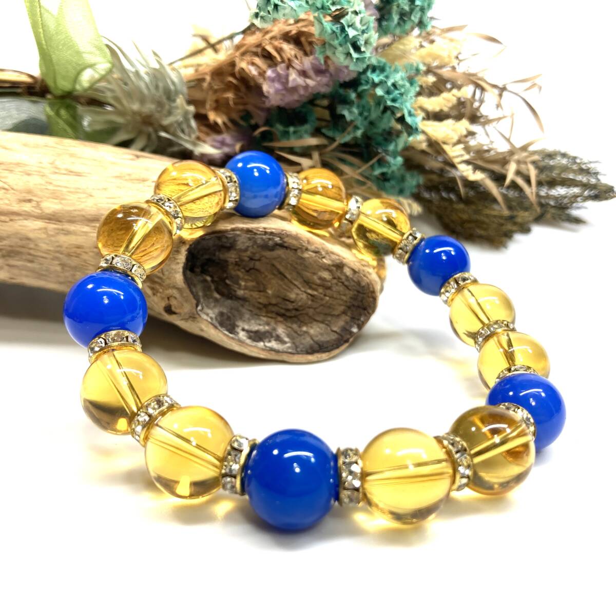 > 青瑪瑙&シトリン パワーストーン ブレスレット 天然石 (ゴールド) 12mm 金運 仕事運 メンズ・レディース 開運 浄化 数珠ブレス
