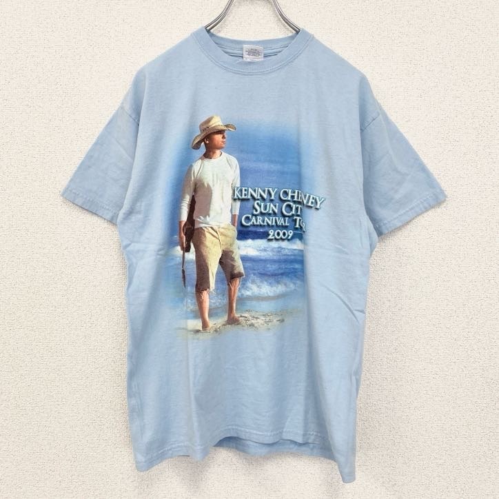 > 古着 used GILDAN 半袖プリントTシャツ ケニーチェズニー 音楽 カントリー 水色 レトロデザイン Mサイズ