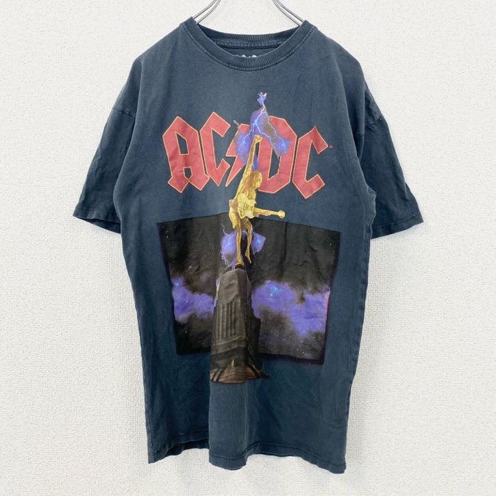 > 古着 used AC/DC エーシーディーシー 半袖バンドTシャツ 黒 ブラック フェード フロントプリント Sサイズ