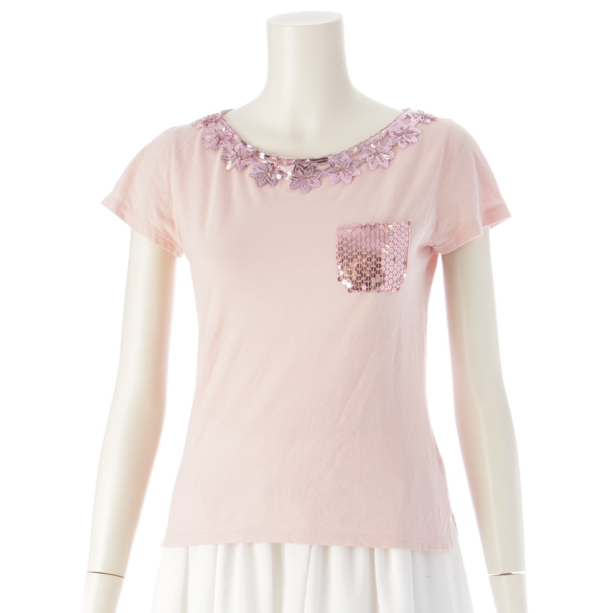 - ミュウミュウ スパンコール 半袖Tシャツ ピンク S【中古】