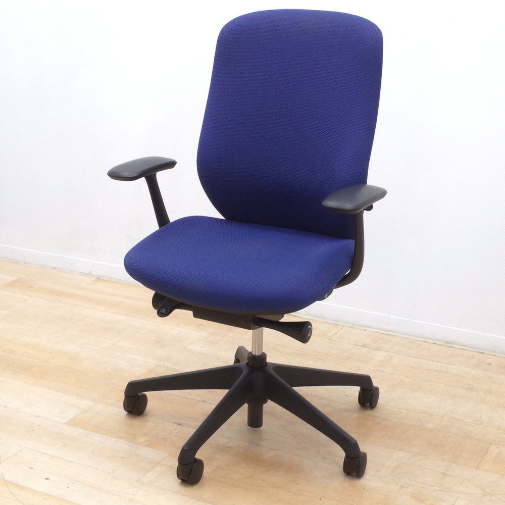 - オカムラ okamura シルフィー オフィスチェア C647XR-FSF3 肘付 ブルー バックカーブアジャスト ハイバック 布張 KK17006 中古オフィス家具