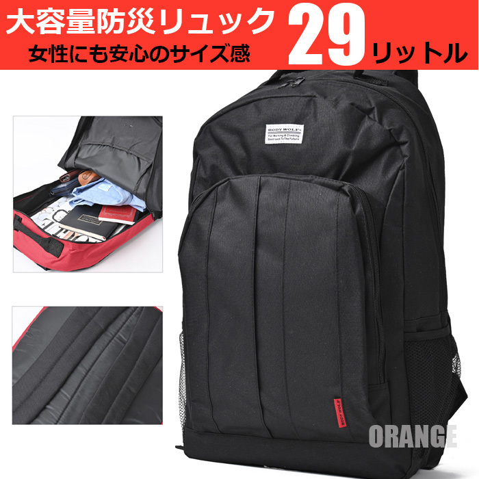 - 送料無料 大容量 29リットル 防災 リュック メンズ レディース 防災リュック 防災バッグ リュックサック 軽い 軽量 地震 台風 対策 黒□