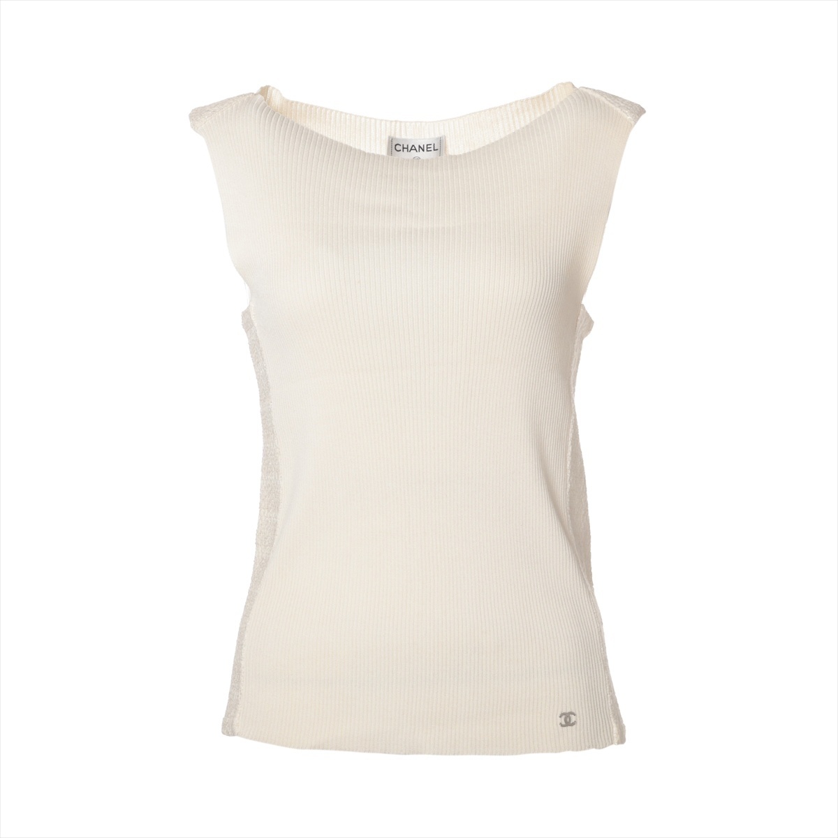 - シャネル CHANEL タンクトップ レーヨン コットン プリーツ ノースリーブ 99P 1999 アイボリー