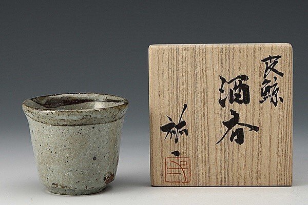 - 5041p 猪飼祐一 皮鯨 酒呑 ぐい呑 酒器 京唐津 共箱 /IK2