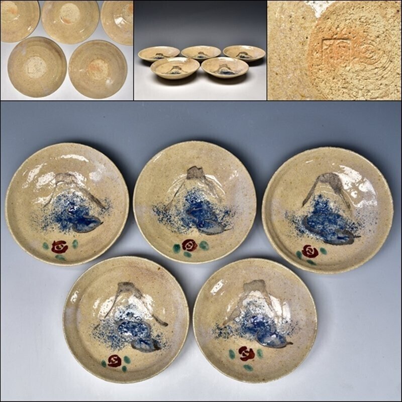 > U08807 作者不明 日本画家 銀彩 富士図 皿 丸皿 銘々皿 菓子皿 懐石 会席 /G275
