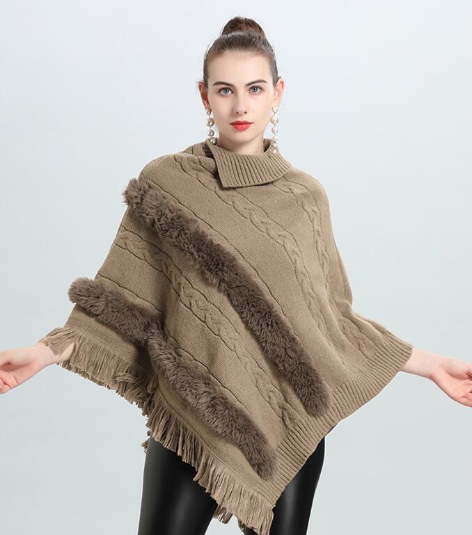 > M1021 ポンチョレディース● 着心地抜群 20代30代40代 ● 羽織 ニット素材 ケーブル編み フリンジ キャメル