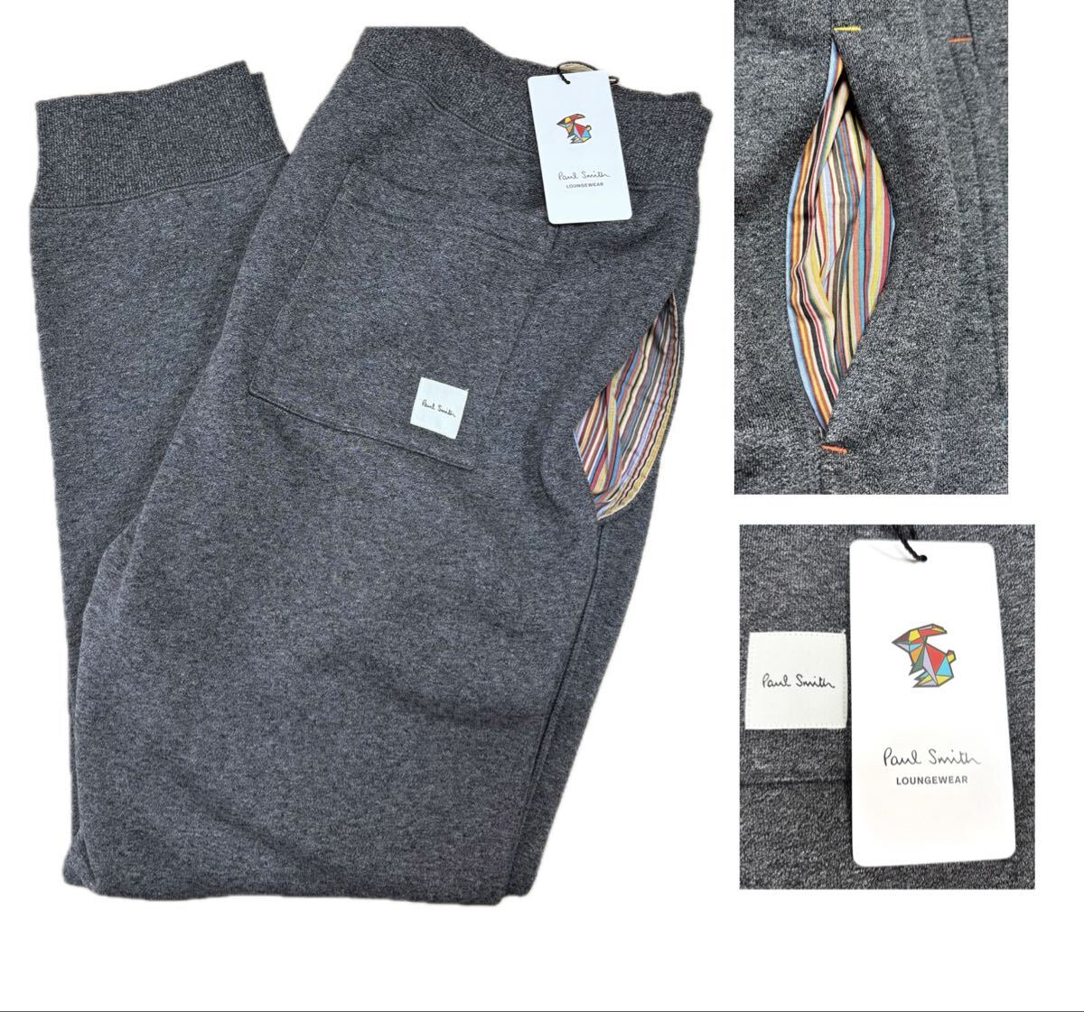 > 新品 ポールスミス マルチストライプ ジョガーパンツ スウェット Lサイズ 裏起毛 ホームウェア チャコール杢 367787 BC
