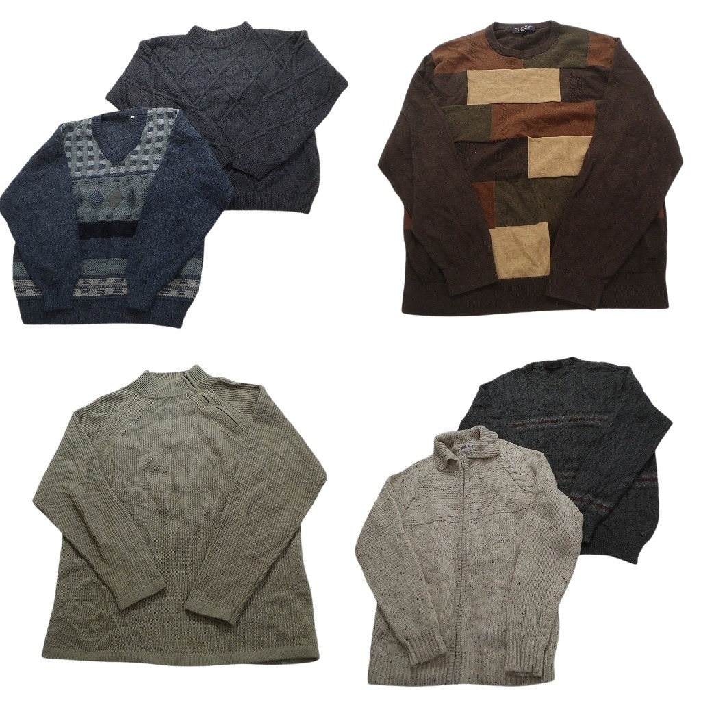 - 古着卸 まとめ売り ニットMIX セーター 6枚セット (メンズ XL ) Vネック フルジップ ライン リブニット ケーブル編み NC3563 1円スタート