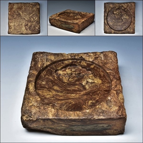 - U08801 中国 茶注台 硯型 オブジェ 床煉瓦 彫刻 陶石 清代 時代 煎茶