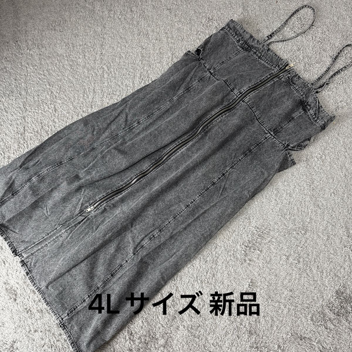 - 大きいサイズ 部分肌見せロングデニムキャミワンピースブラックウォッシュ4L★ゆうパケット配送可能★新品51