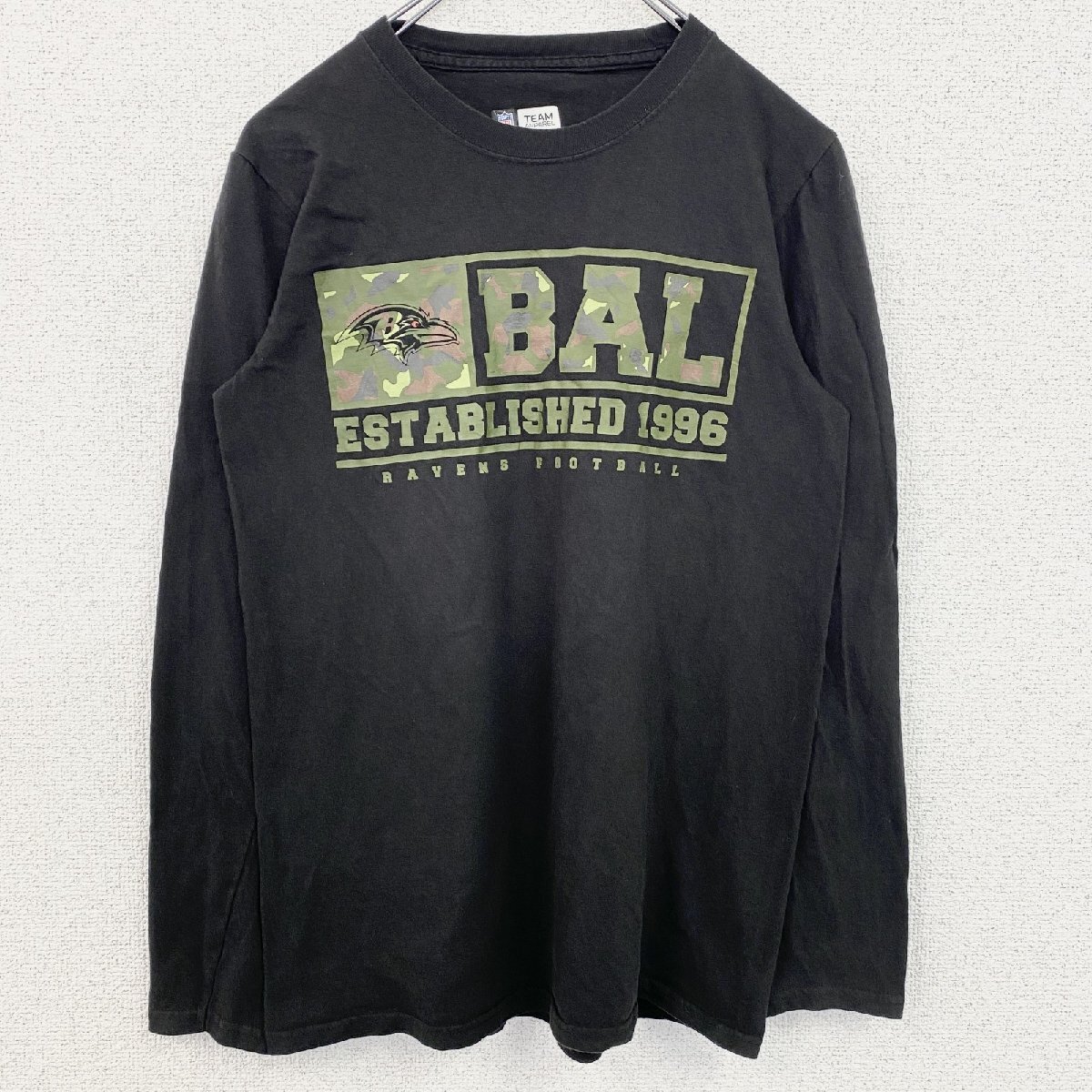 > 古着 used NFL TEAM APPAREL レイブンズ 長袖プリントTシャツ ロンT フットボール 黒 ブラック Sサイズ
