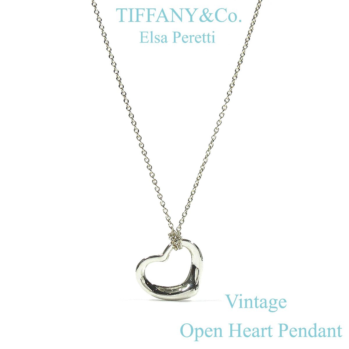 - 2 ティファニー ヴィンテージ オープンハート 14mm スモールサイズ シルバー ネックレス 925 41.5cm スペイン製