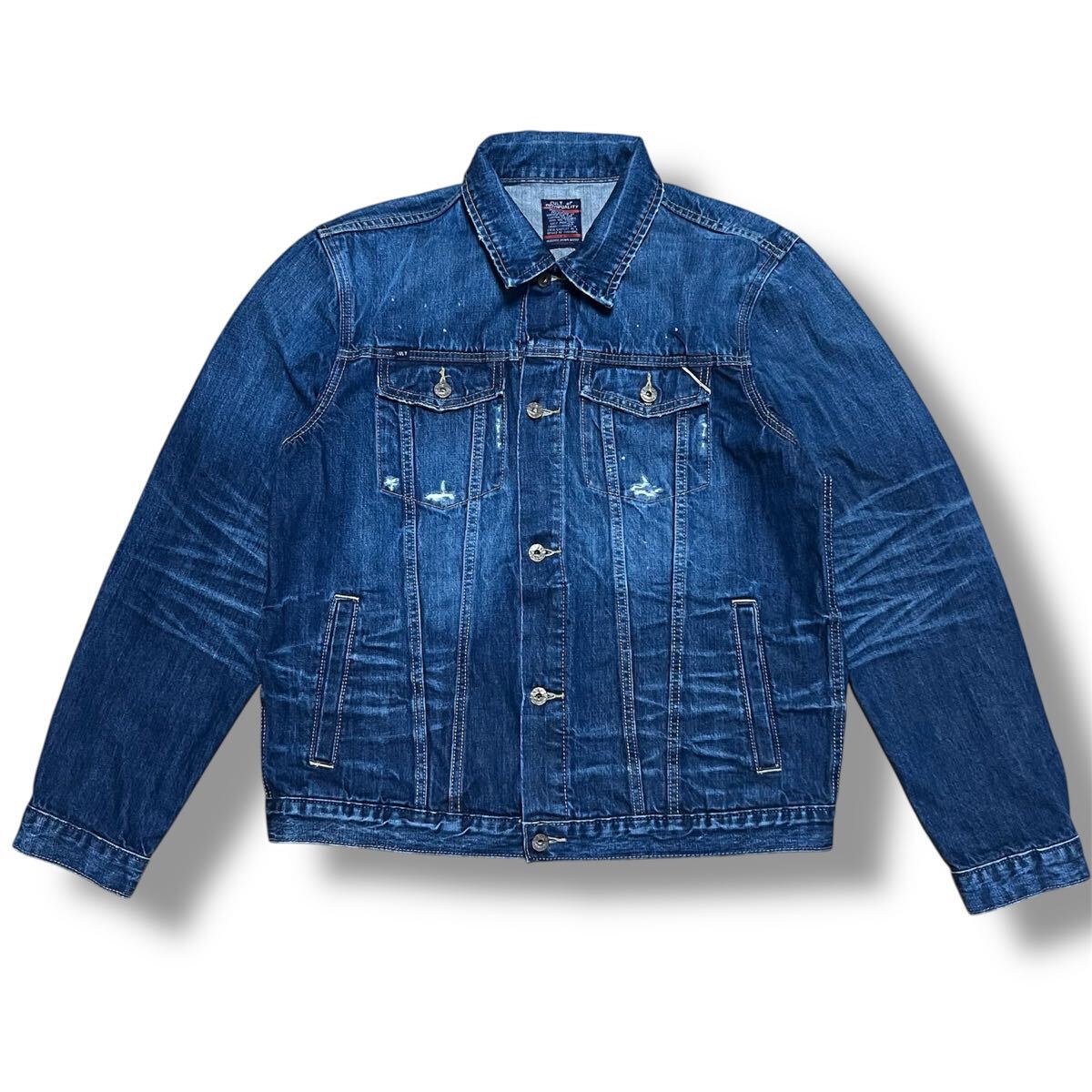 - cult of individuality 00s デニムジャケット 値引可 ハチノス カルトオブインディビジュアリティ Y2K Gジャン ダメージ加工 クラッシュ