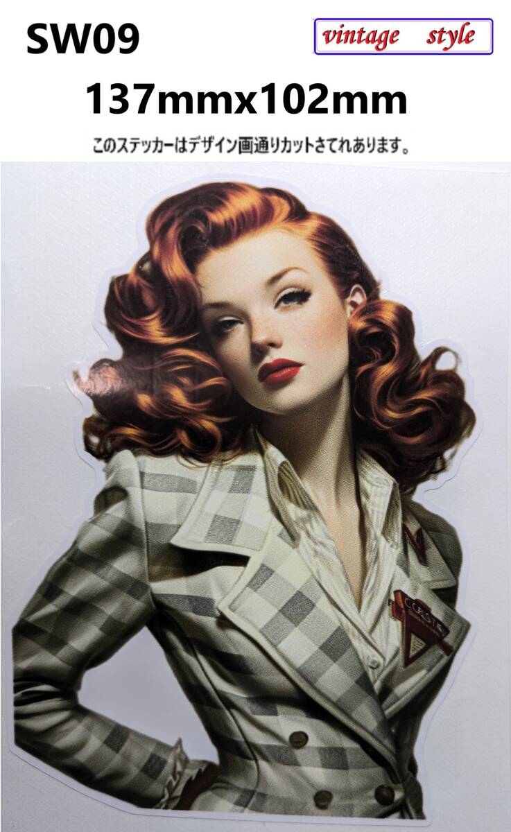 - SW09-08 特価~15%OFF レトロ 美人 セクシー&クール 顔上半身 ヴィンテージスタイル ピンナップガール セクシーステッカー ギター