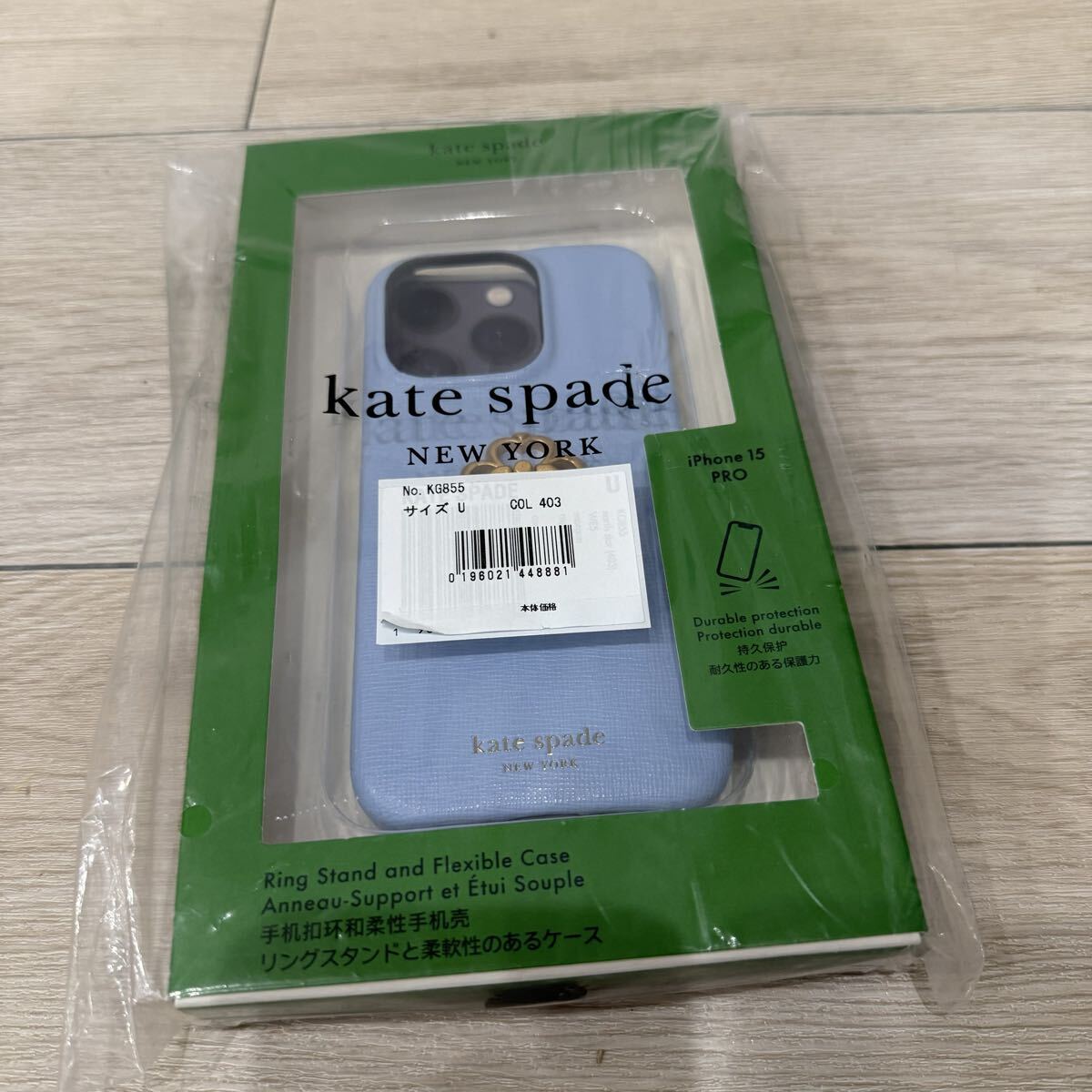 > Kate Spade スマホケース 水色 リング付き ケイトスペード クローバー iPhone15 PRO