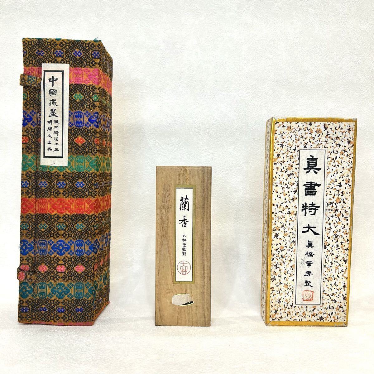 > [未使用] 中国墨 3点 箱付 守如蔵煙 上海墨厂 黄山松煙 徳貞 野客 曹素功 貢煙 百寿図 超貢漆煙 美術 書道 墨 唐墨 極美品 中国