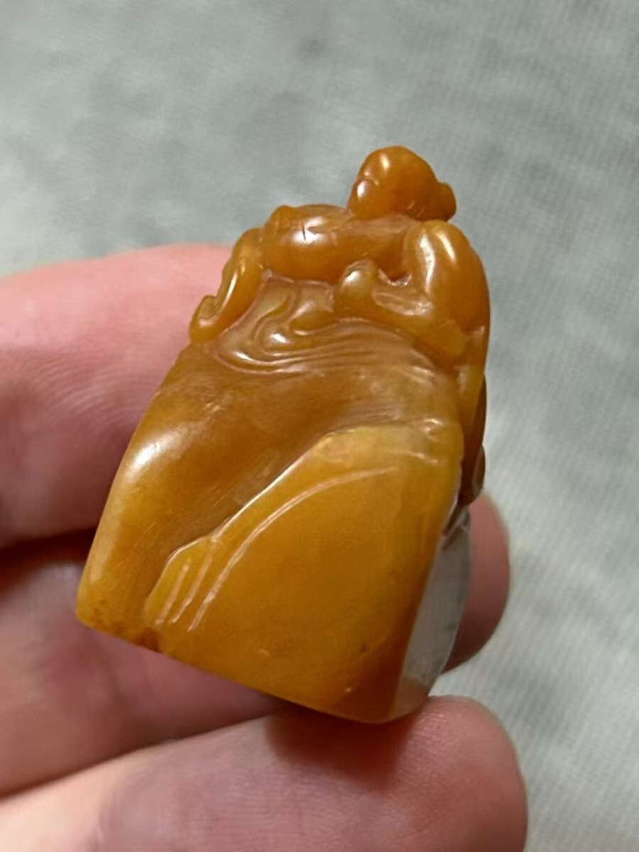 - 田黄 浮彫鈕 石印材 保管品コレクション 2/ 篆刻 書道 印材 中国美術 印章 印鑑 検:寿山石 鶏血石 田黄石 青田石