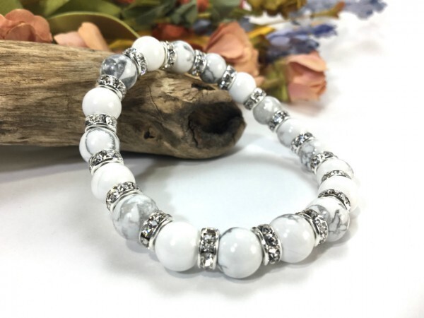 - ハウライト パワーストーン ブレスレット 天然石ブレス 10mm メンズ・レディース (ロンデル:シルバー) 開運 浄化 数珠ブレス♪