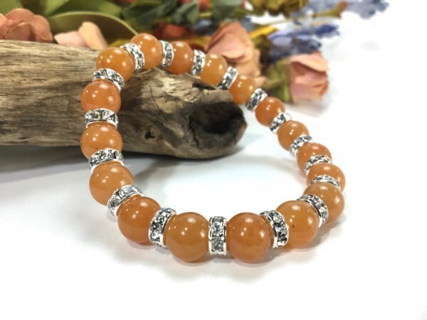 - レッドアベンチュリン パワーストーン ブレスレット 天然石ブレス 10mm メンズ・レディース (ロンデル:シルバー) 浄化 数珠ブレス♪