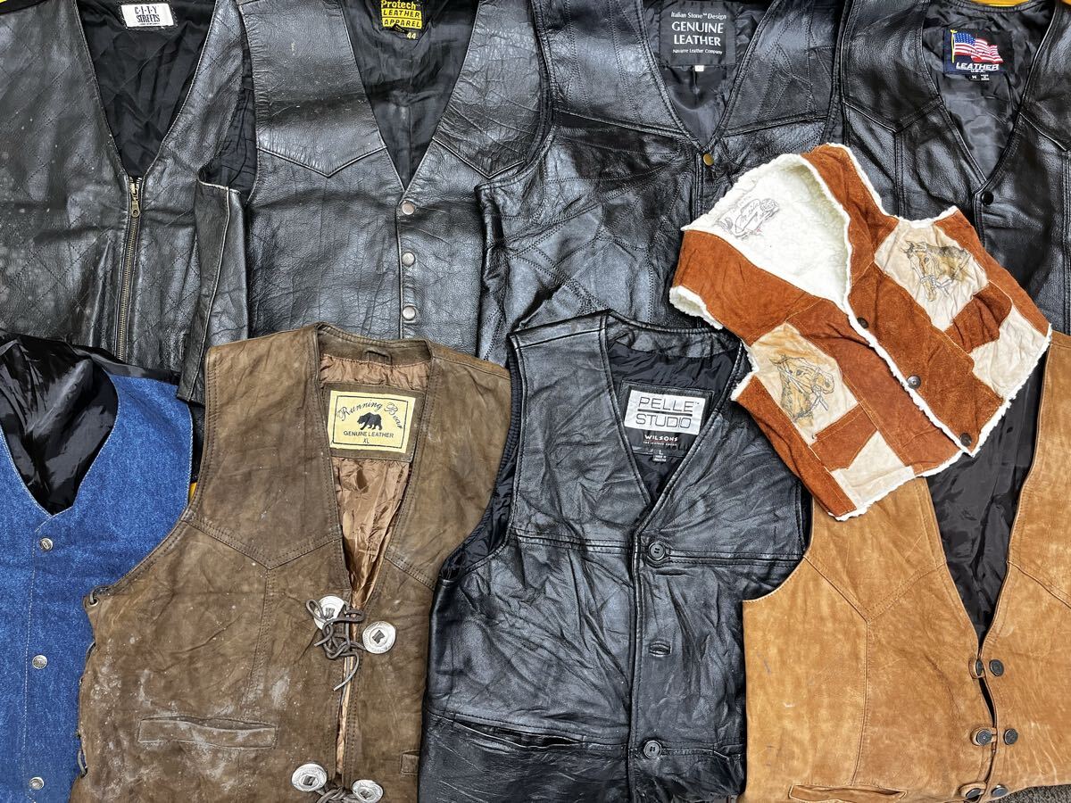 - USA古着 レザー ベスト 8 枚 セット まとめ売り 1円スタート 大量 卸売り アメリカ古着 ブラック ブラウン アメリカ古着 ベスト USA古着卸