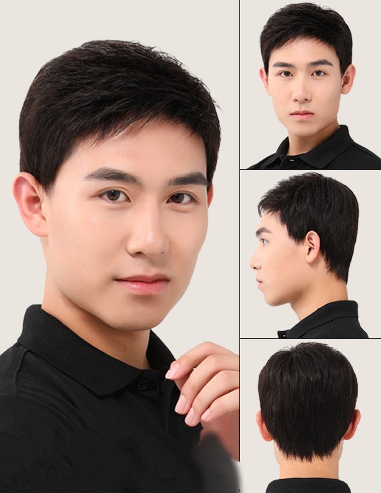 > メンズウィッグ フルウィッグ かつら 男性用 ショート 脱毛症対策 人毛 カツラ つむじ 自然黒 普段使い 短髪 手植えつむじ イケメン