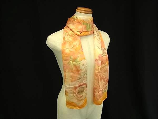 - 1円 ■美品■ Salvatore Ferragamo フェラガモ シルク100% 花 フラワー スカーフ ストール ショール レディース オレンジ系 FU2984
