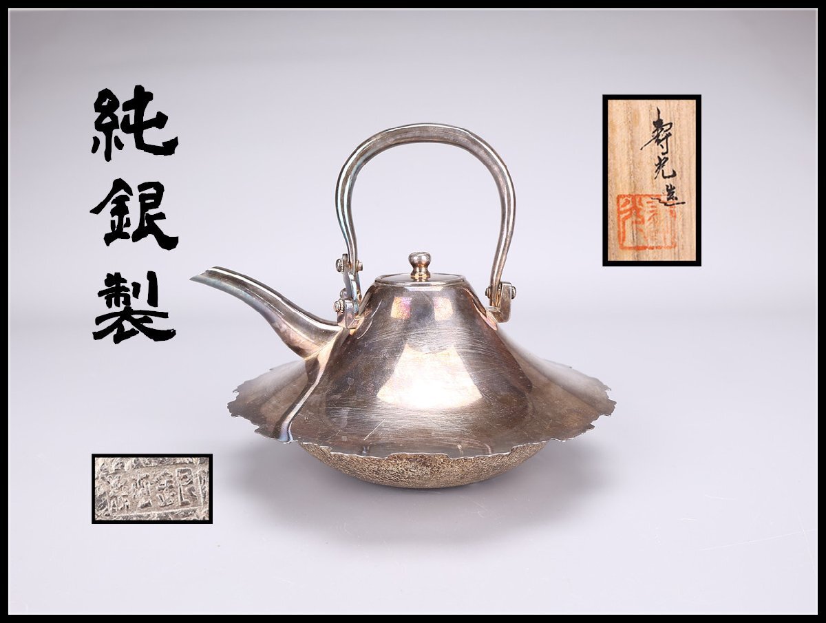 【吉】GB511 時代 樋口寿光堂造 【純銀製】 銚子 急須 重305g/共箱付 本物保証 美品H!