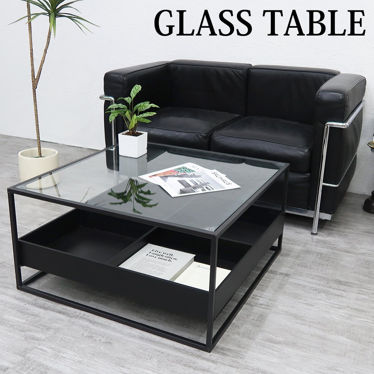 - センターテーブル ガラステーブル サイドテーブル 高級 収納付き ガラス モダン 北欧 インダストリアル おしゃれ ソファ 直径80cm CT-06L