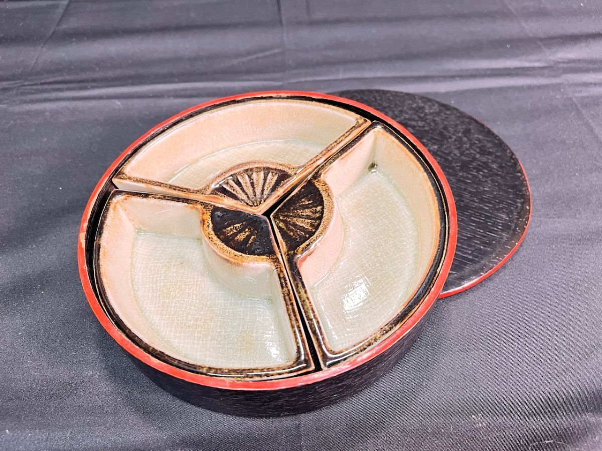> 扇形小皿 直径15㎝ 高さ3.5㎝ 407g 美濃焼 扇 小皿 小鉢 取り皿 陶芸 懐石 茶道具 陶器 (14925)