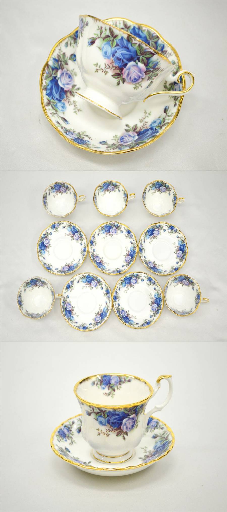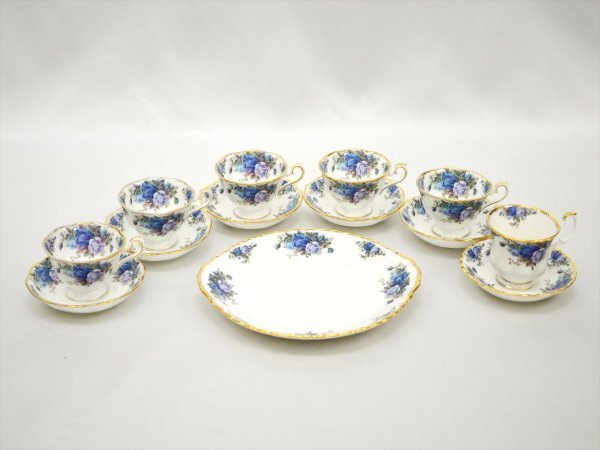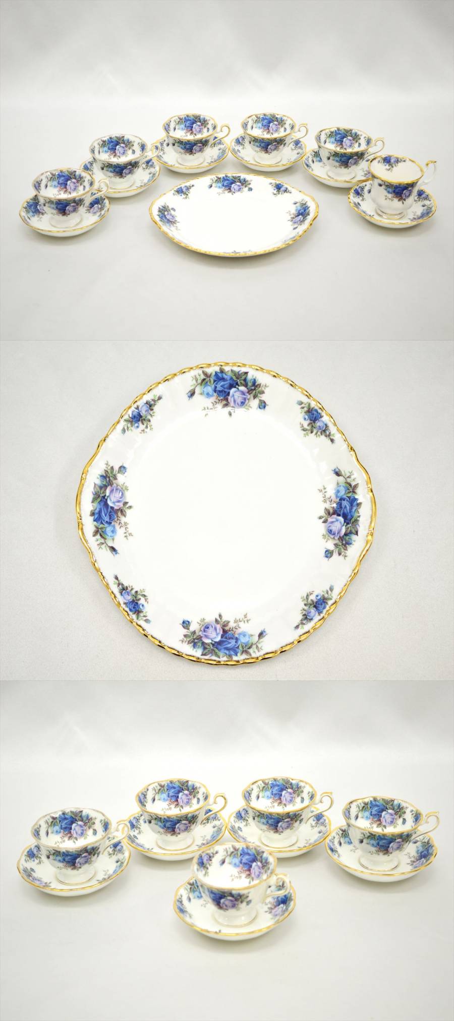 - KM711●中古品●ロイヤルアルバート ムーンライトローズ ティーカップ&ソーサ 5客・コーヒーカップ&ソーサ 1客・プレート皿 1枚 セット