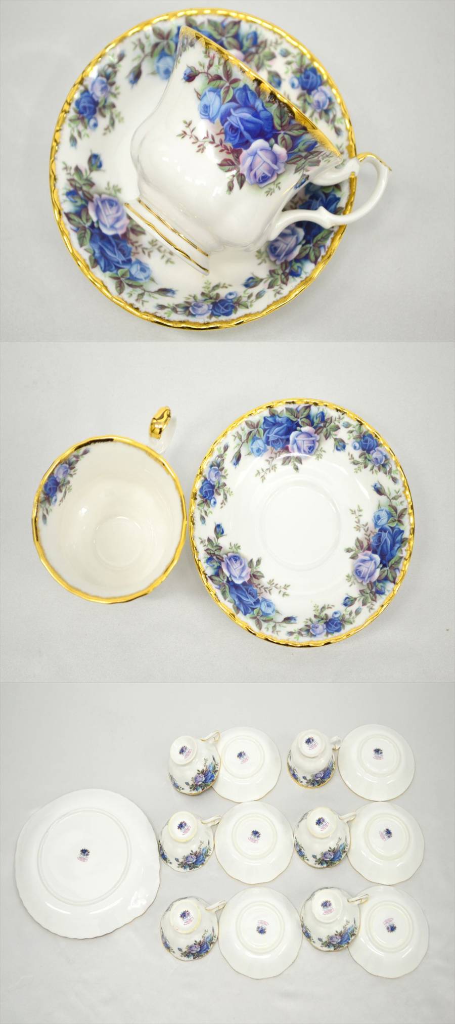 > KM711●中古品●ロイヤルアルバート ムーンライトローズ ティーカップ&ソーサ 5客・コーヒーカップ&ソーサ 1客・プレート皿 1枚 セット