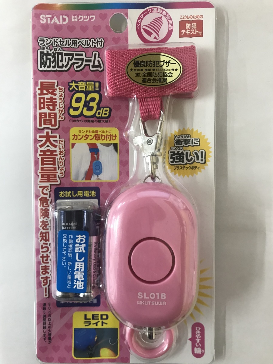 - クツワ 防犯アラーム ランドセル用ベルト付 ピンク LEDライト仕様 お試し用電池付き SL018 PK-1200 送料無料 B-109