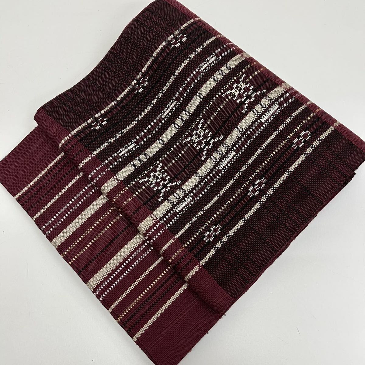 - 長尺 花織 名古屋帯 正絹 紬 織柄 八寸 Q-216
