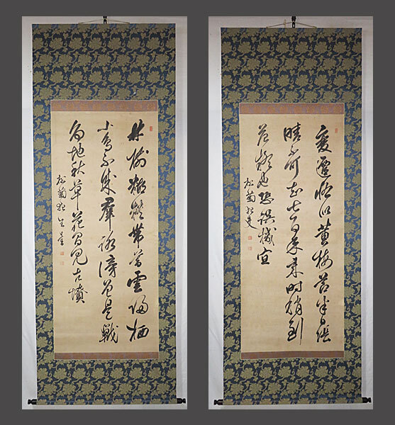 - 【adva】【真作】■木戸孝允■三行書二幅/大幅■号松菊■肉筆■掛軸■掛け軸■明治維新の元勲■