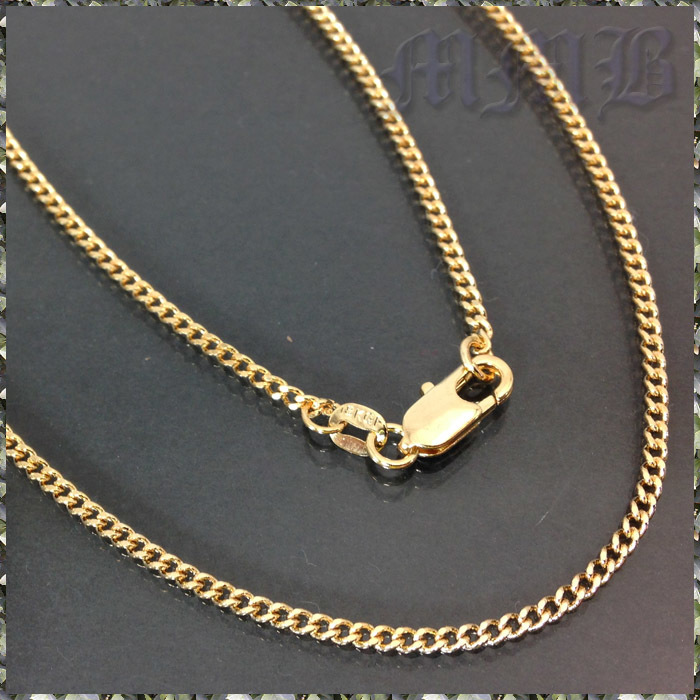 > [NECKLACE] 18K Gold Filled Flat Curb Chain イエロー ゴールド スリム 喜平 チェーン ネックレス 1.7x770mm (5.5g)