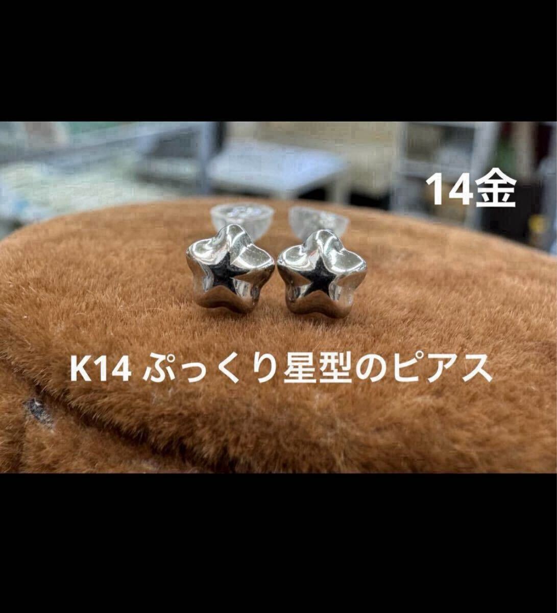 - 【新品】★K14 ぷっくり星型のピアス ホワイトゴールド 14金 スキンジュエリー ピアス K14WG つけっぱなし 星 スキンジュエリー