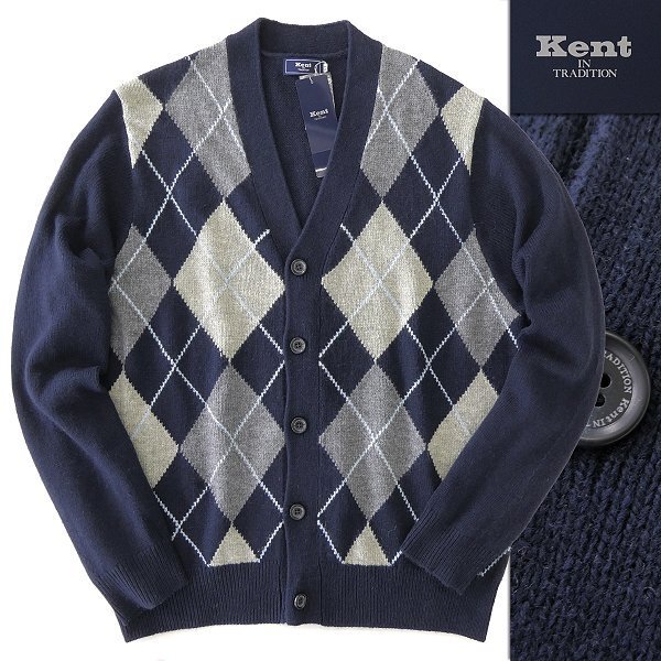 - 新品 ケントイントラディション アーガイル柄 Vネック ニット カーディガン 3L 紺 【I57023】 Kent IN TRADITION 秋冬 メンズ ウール