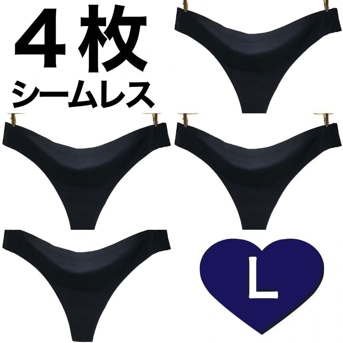 - Tバック シームレス ショーツ 4枚セット Lサイズ ブラック 黒 パンツ 下着 レディース Tバックショーツ ストレッチ シンプル 伸縮性