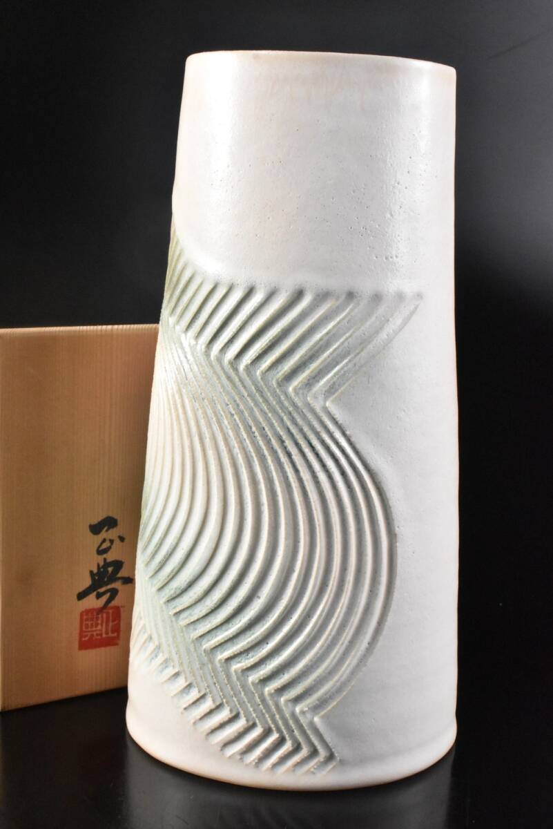 - 【雲】某資産家買取品 瀬戸 緑釉 花入 在銘 共箱 古美術品(旧蔵出品) F8554