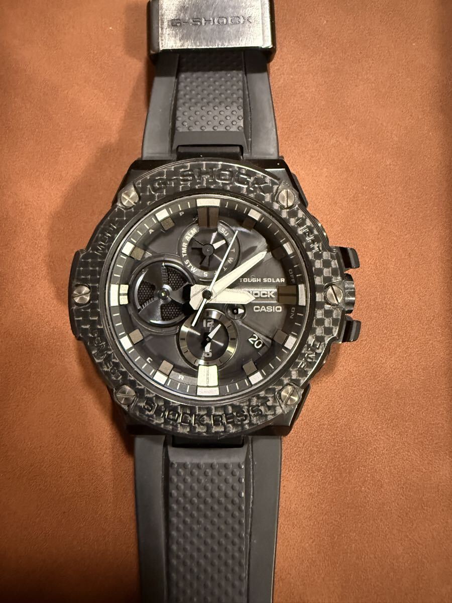 - CASIO カシオ G-SHOCK G-STEEL カーボン GST-B100 メンズ 腕時計 ブラック文字盤 電波ソーラー 中古