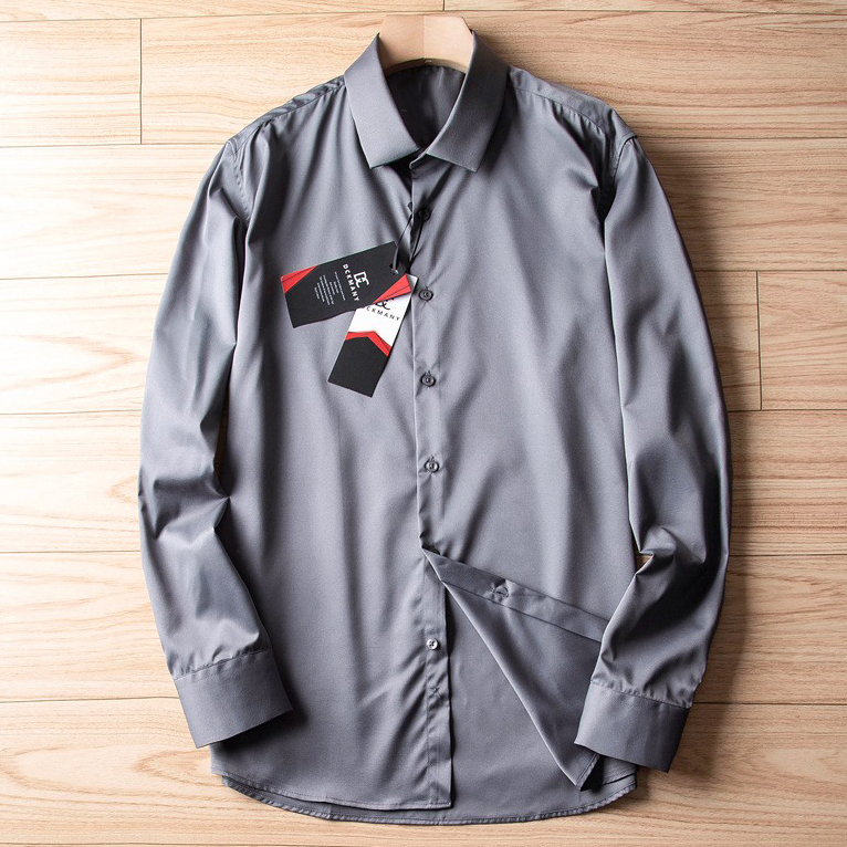 > T1824-2XL/ダークグレー 新品 DCKMANY シルク混 長袖シャツ メンズ 形態安定 ドレスシャツ ワイシャツ スリムフィット 春夏 ビジネスシャツ