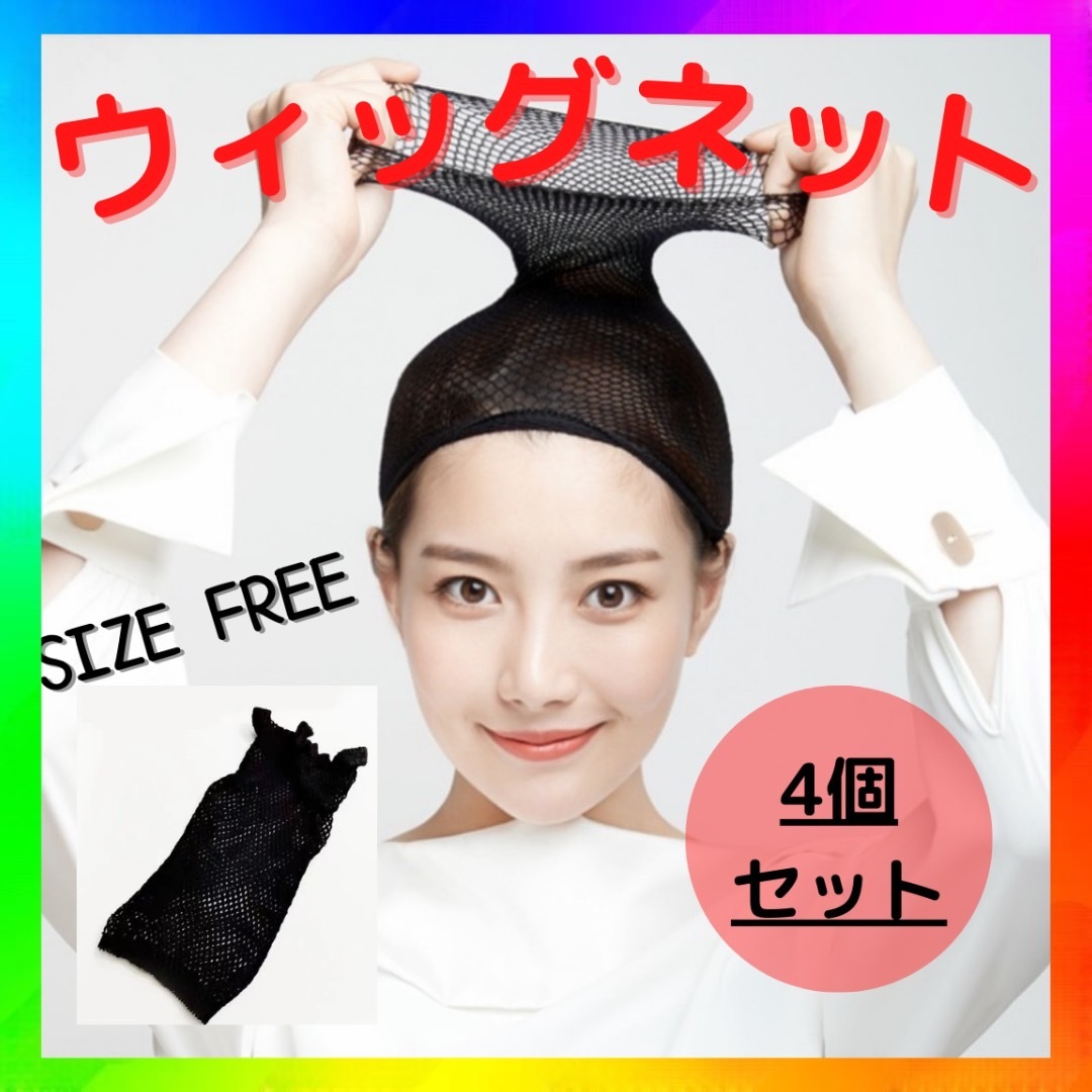 - ウィッグネット 4個セット ブラック ウィッグキャップ コスプレ かつら