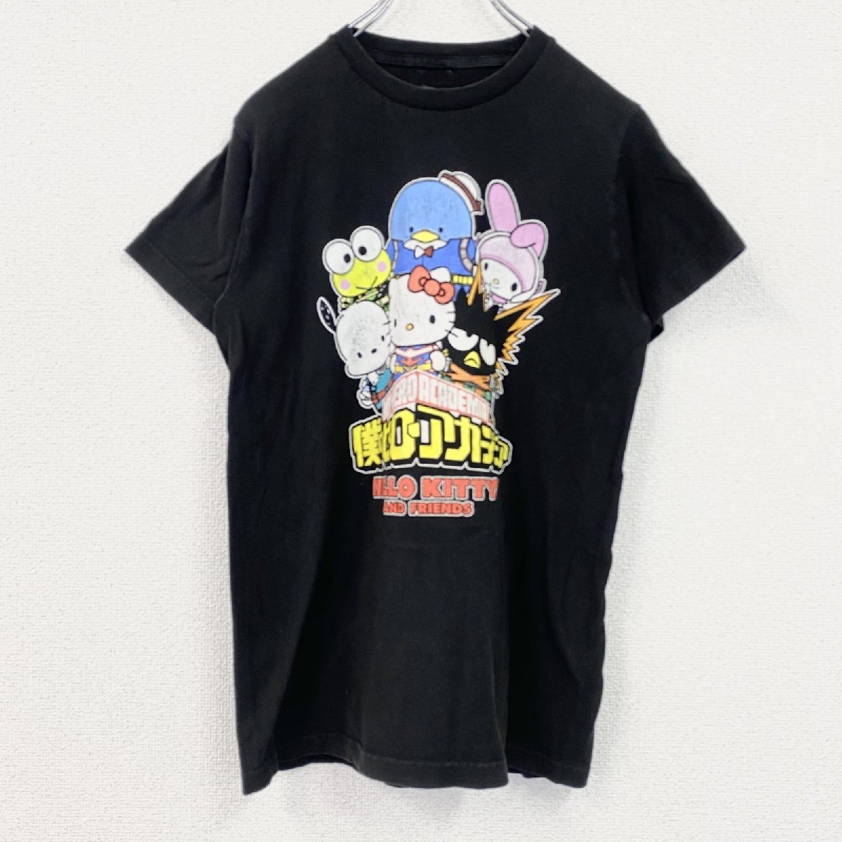 > 古着 used 僕のヒーローアカデミア サンリオ sanrio 半袖プリントTシャツ クルーネック レトロ 黒 ブラック Sサイズ